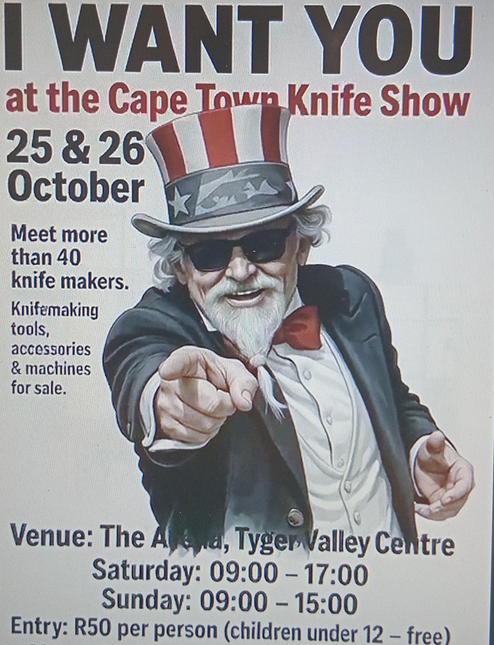 October 25 @ 9:00 am - October 26 @ 3:00 pm The Cape Knife Show Tygervalley Shopping Centre The Arena, Tygervalley Shopping centre, Cape Town R50