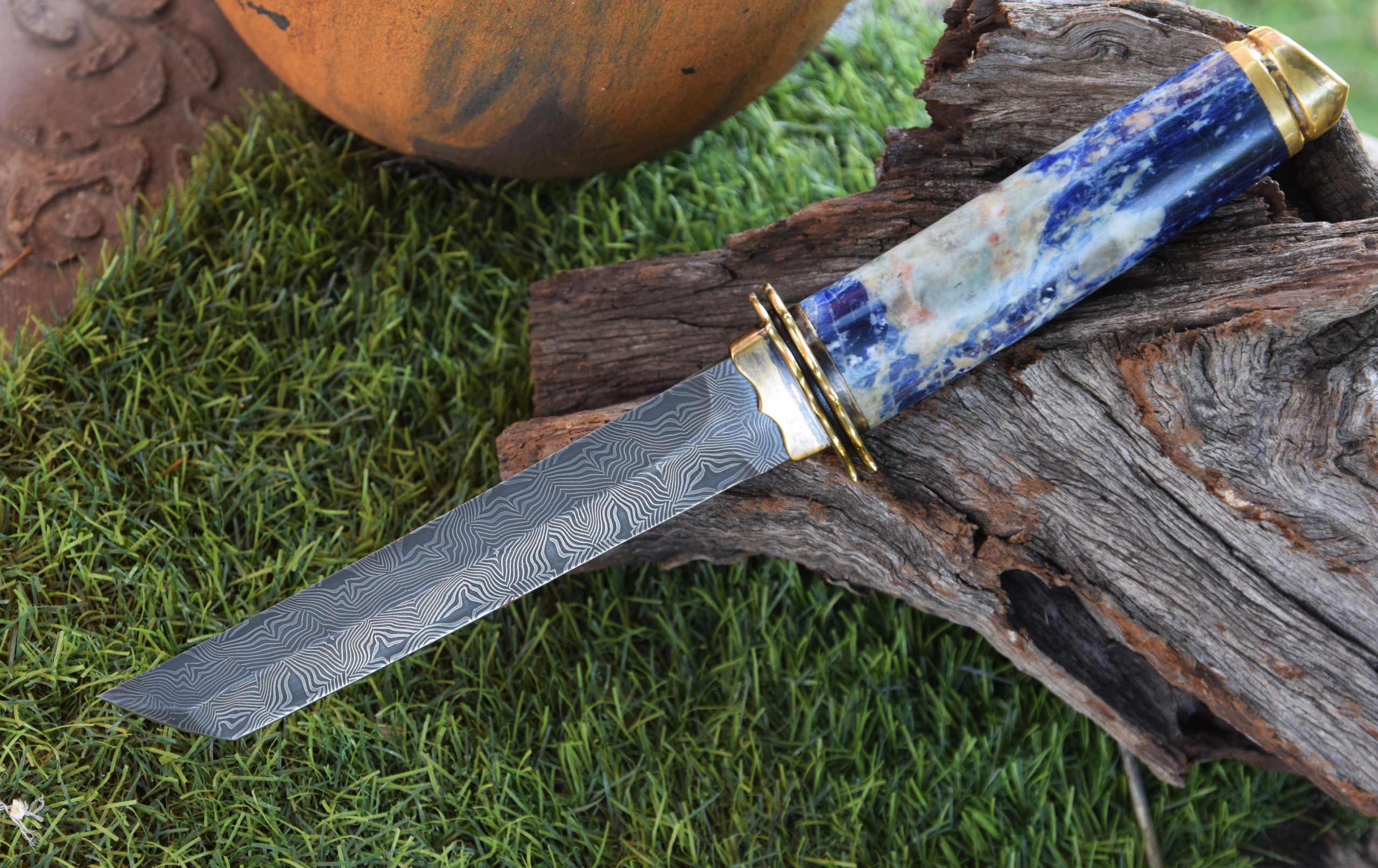 Bolster material: Mosaic Damascus.